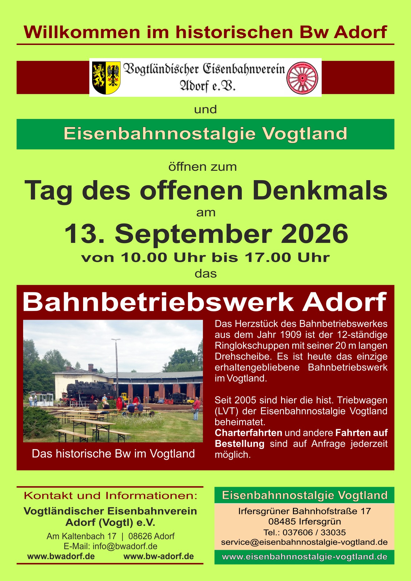 Das historische Bahnbetriebswerk Adorf im Vogtland hat zum Tag des offenen Denkmals am 13. September 2026