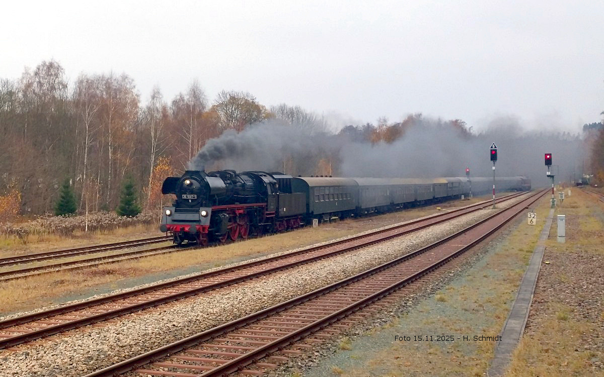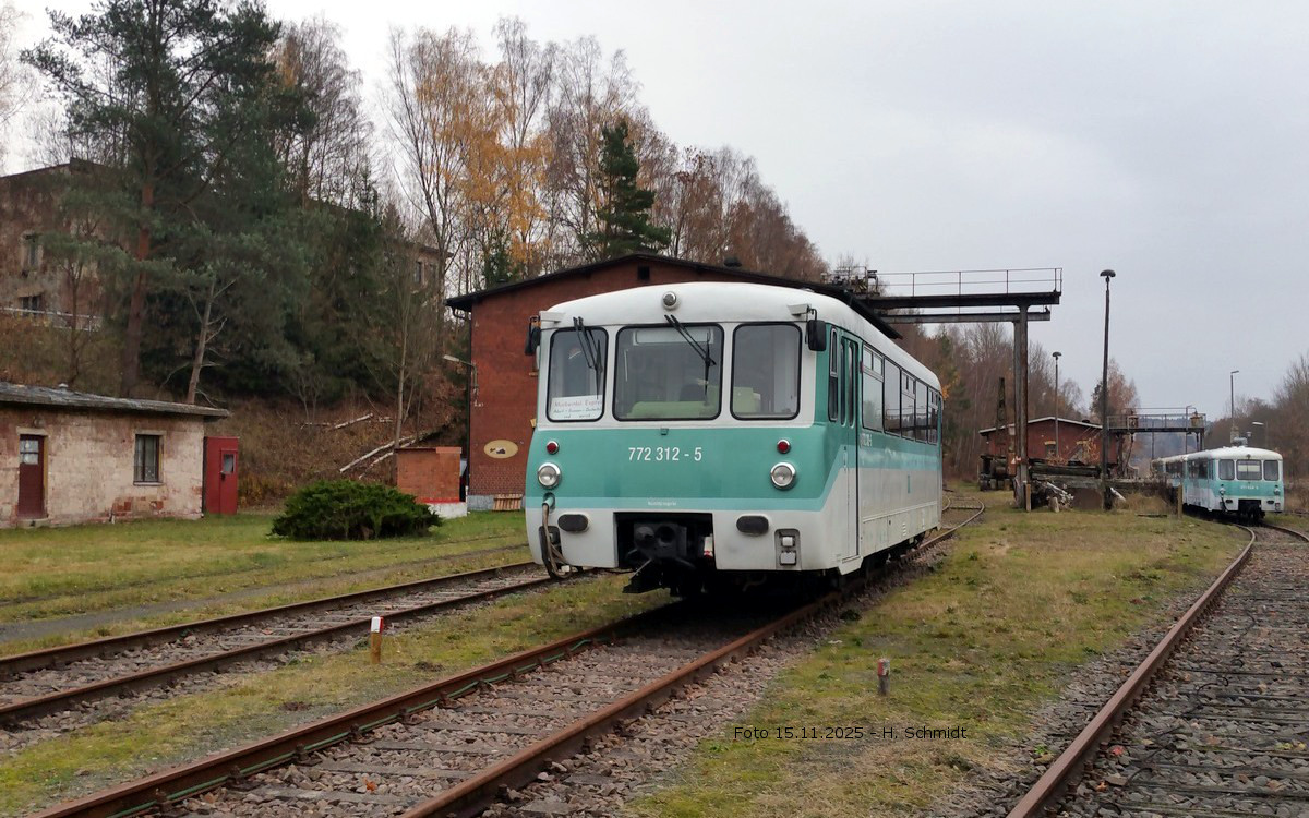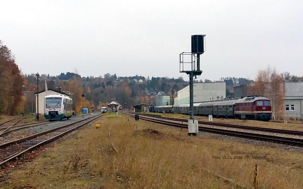 Die Eisenbahnnostalgie Vogtland war am 15. und 16. November 2025 zwischen Adorf und Zwotental zu Sonderfahrten für den OVEB e.V. im Einsatz.
